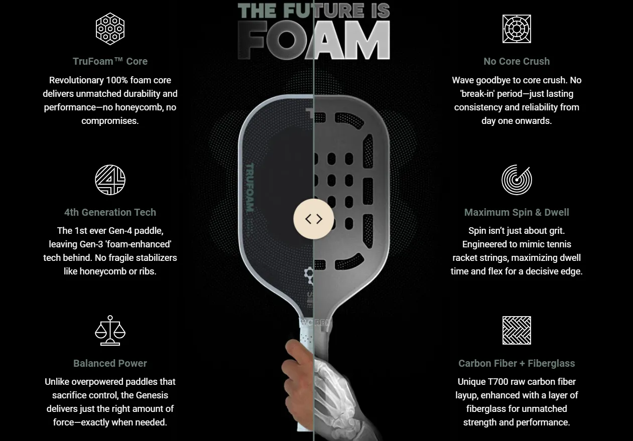 The TruFoam™ Genesis isn’t just a refinement—it’s a game-changer. Using patent-pending 4th Generation Technology, it’s the first-ever 100% foam core tournament-approved performance paddle. No honeycomb. No plastic core. No compromises.